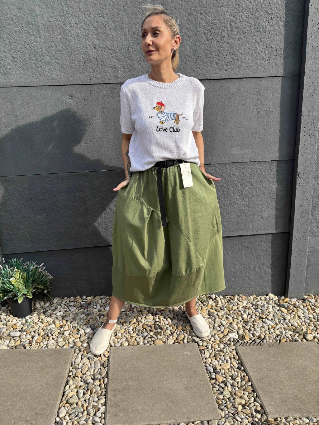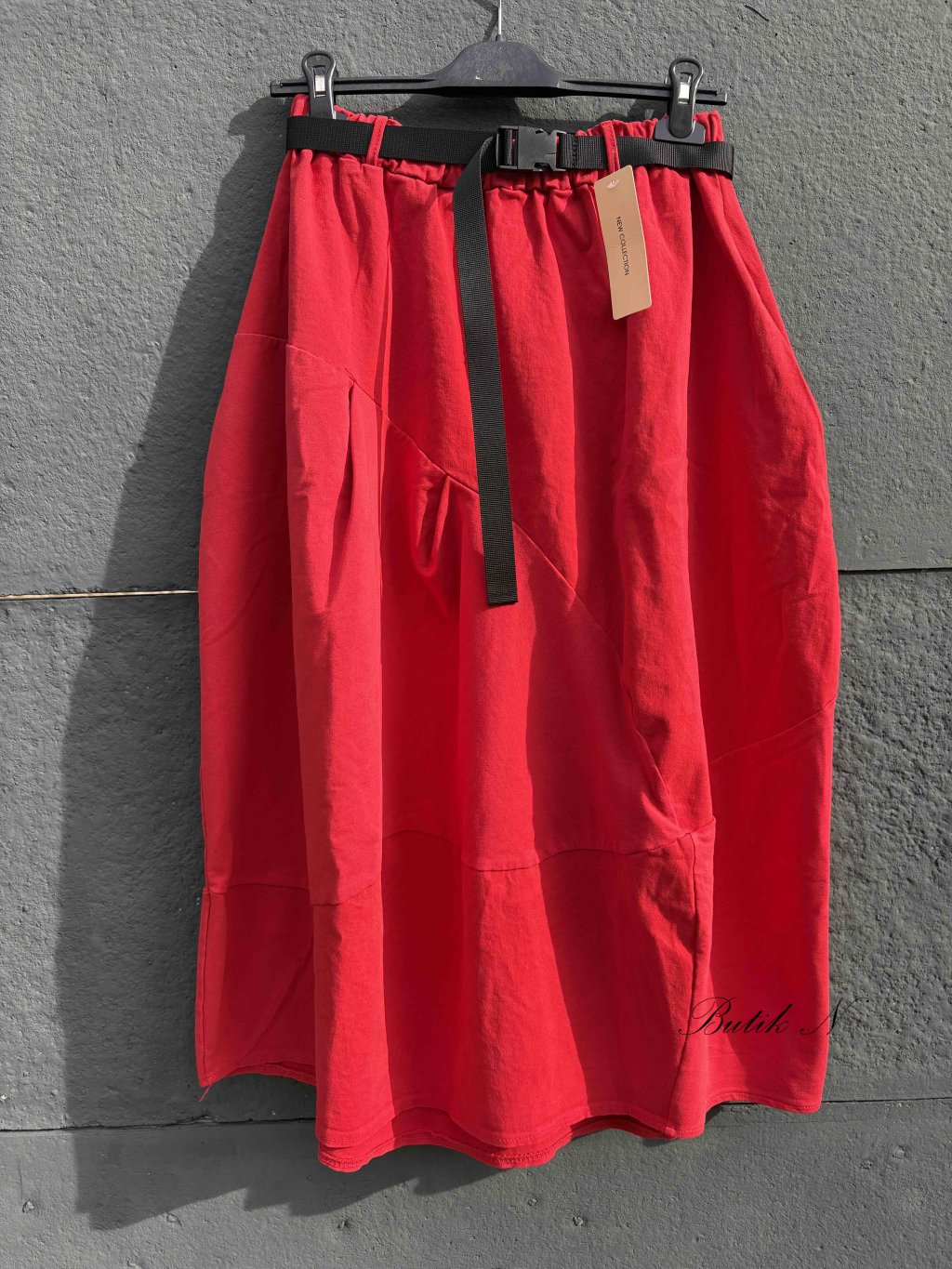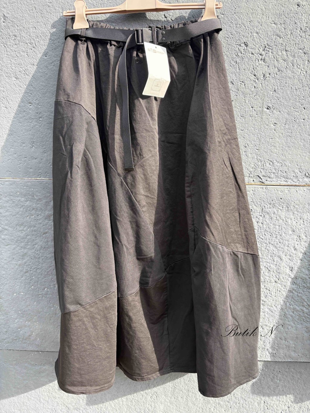 Sukně z luxusního materiálu s gumou v pase, páskem a kapsami, které ocení každá žena. Sukni unosíte celoročně.