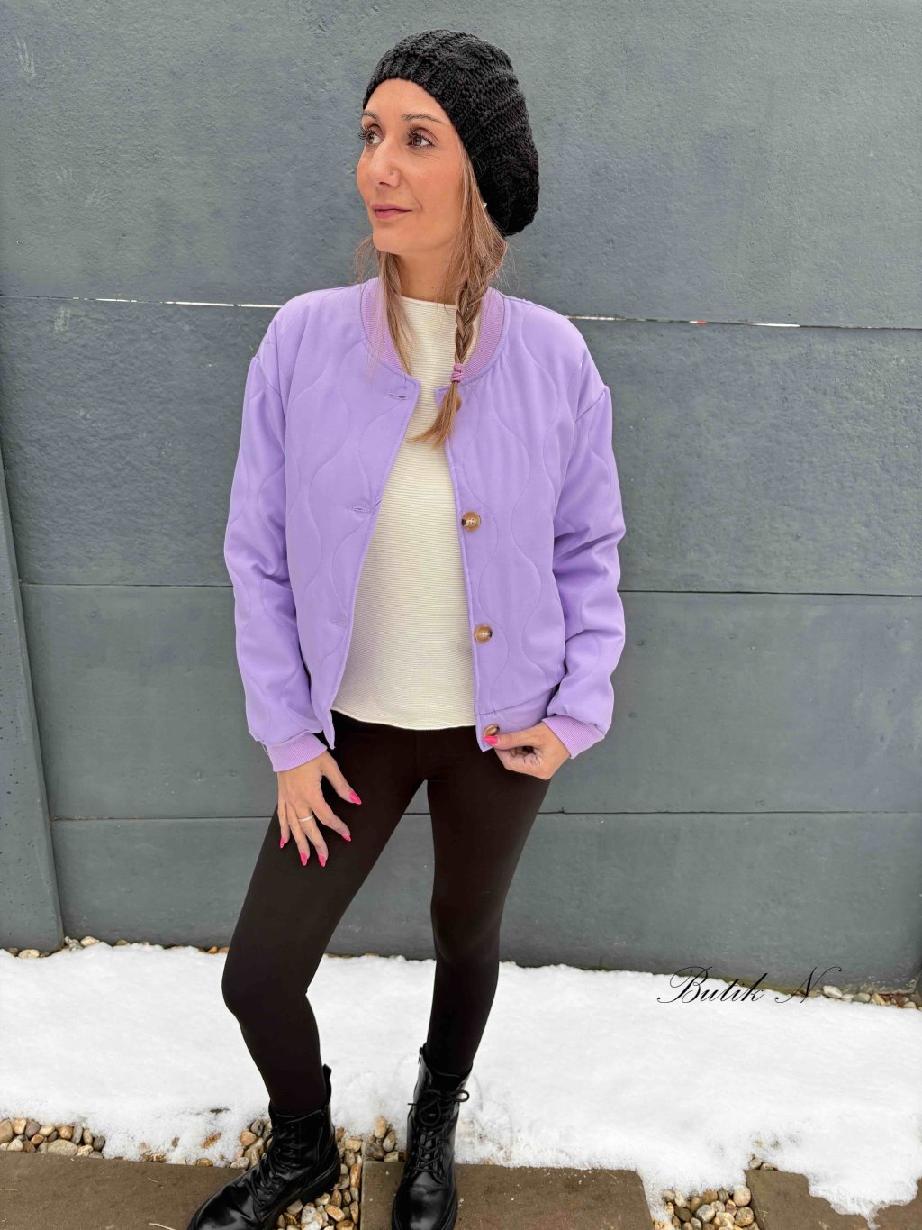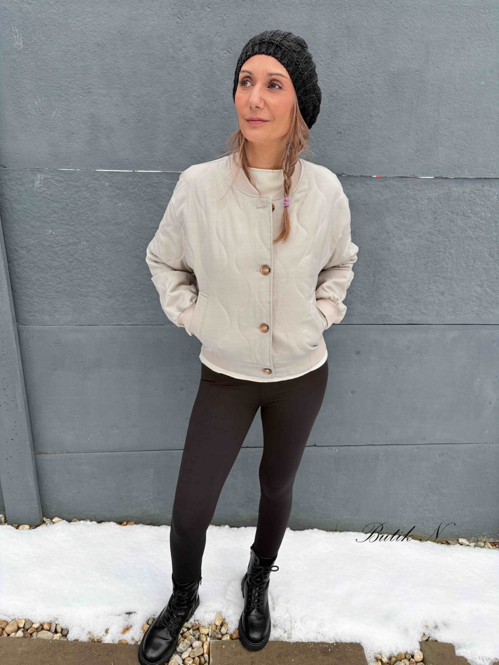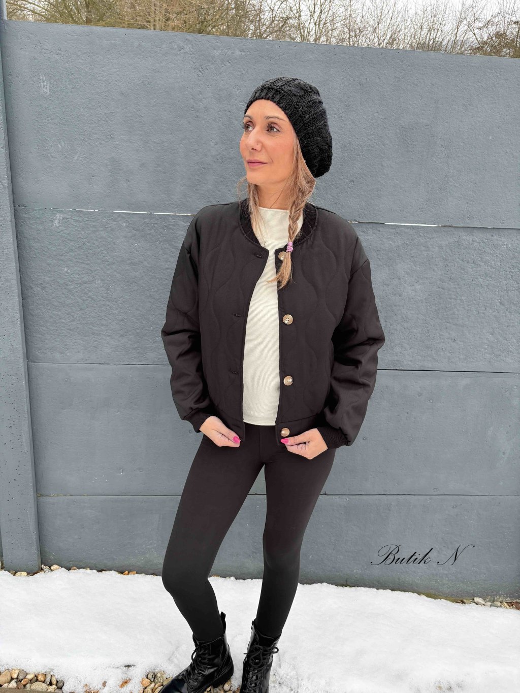 Jarní, prošívaná bunda střižená ve stylu bomber s kapsami a zapínáním na knoflíky.