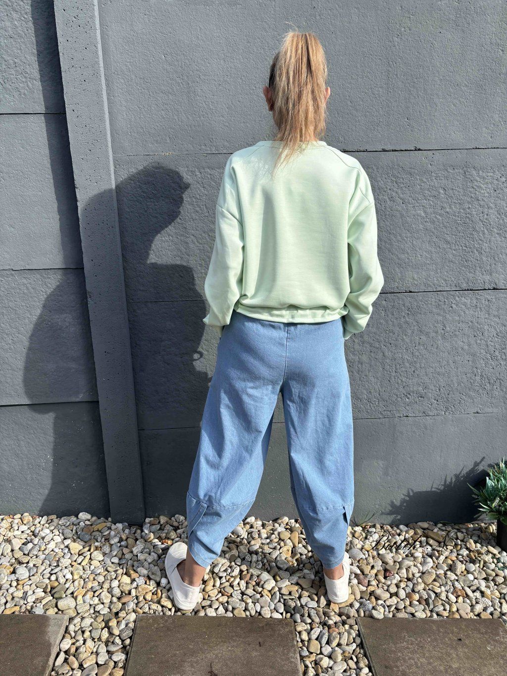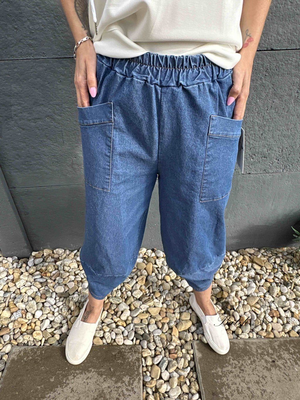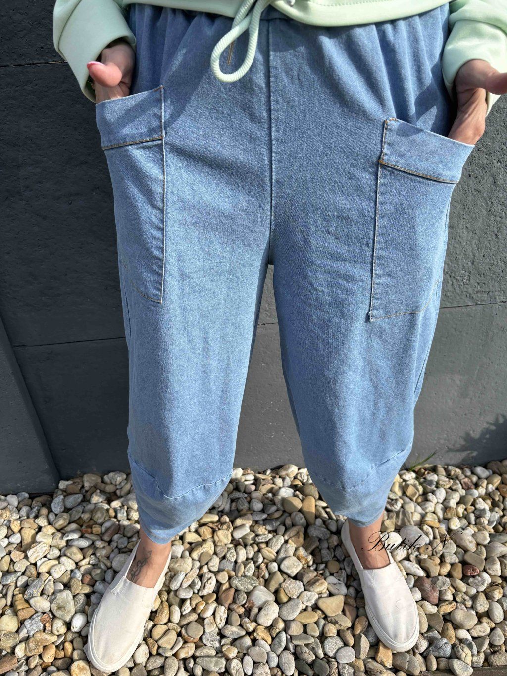 Odlehčené měkké džíny z měkké džínoviny s gumou v pase a velkými předními kapsami. Džíny jsou ideálním kouskem na jaro a léto.