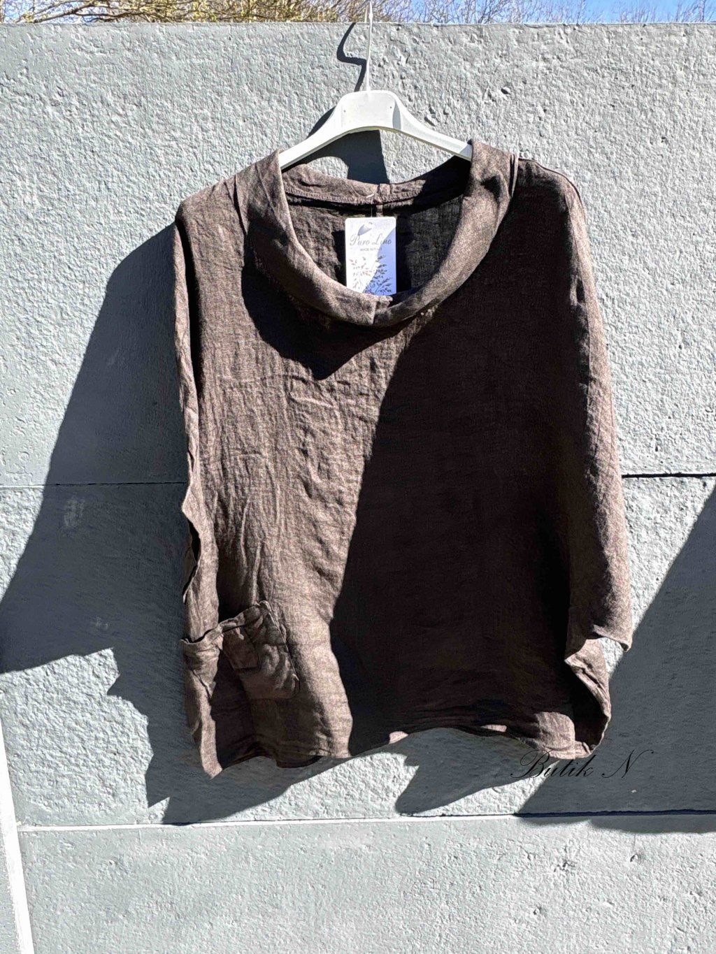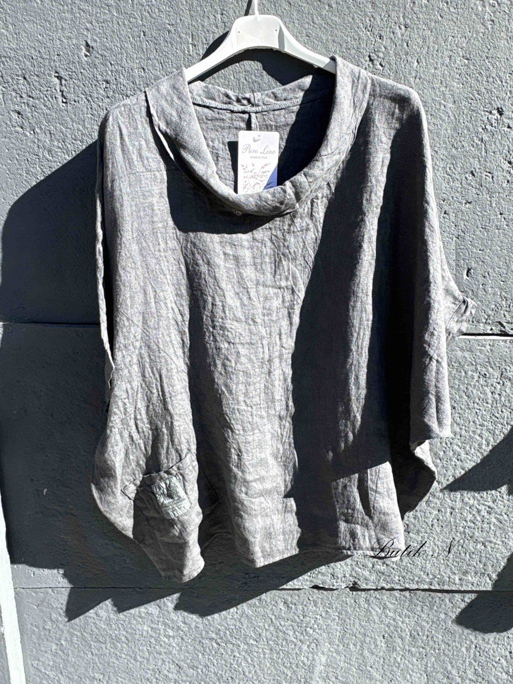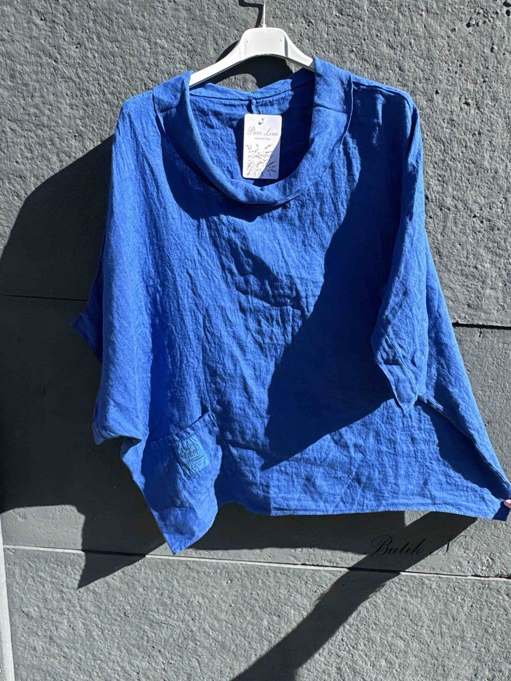 Kvalitní halenka netopýřího střihu s límcem a kapsičkou v nášivkou ve spodní části.