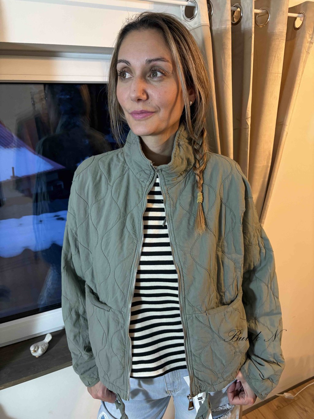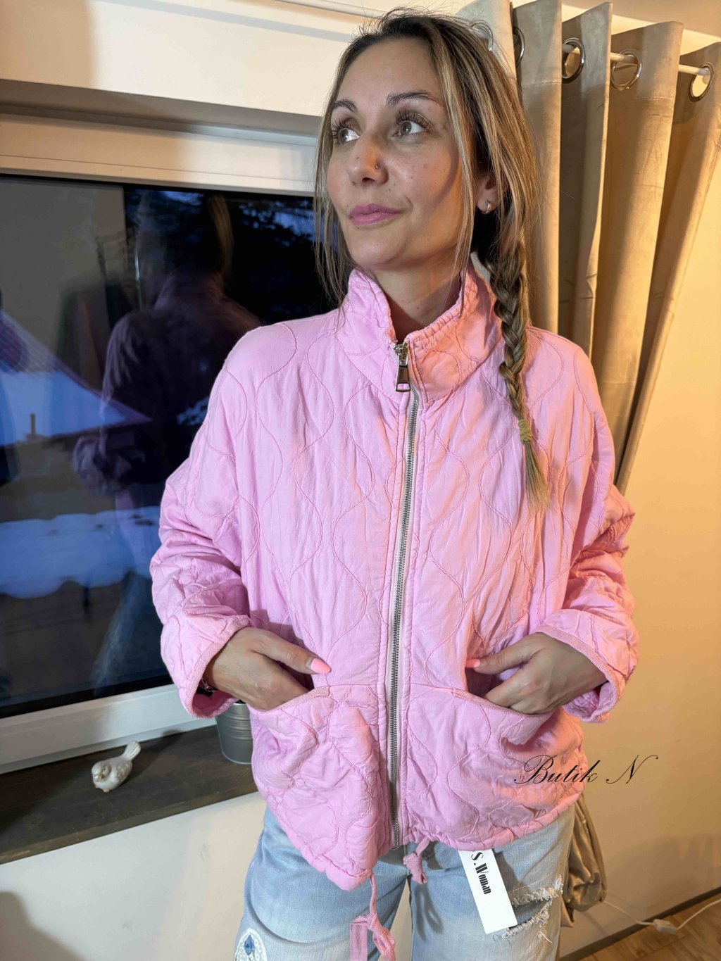 Jarní prošívaná bundička se zapínáním na zip, kapsami a šňůrkou ve spodním lemu ke stažení.