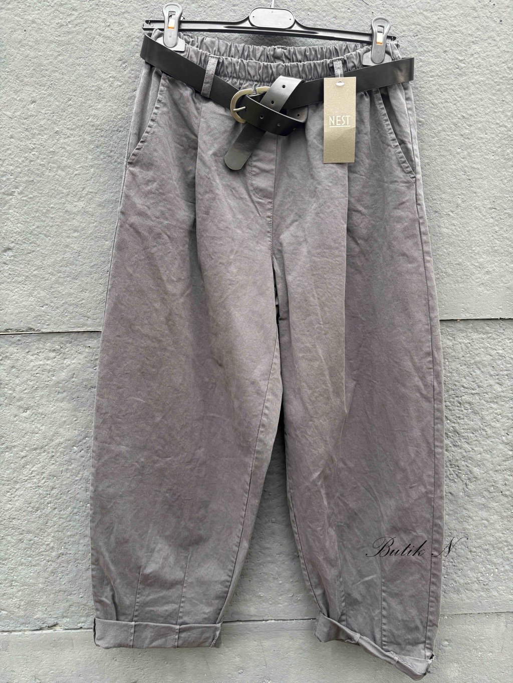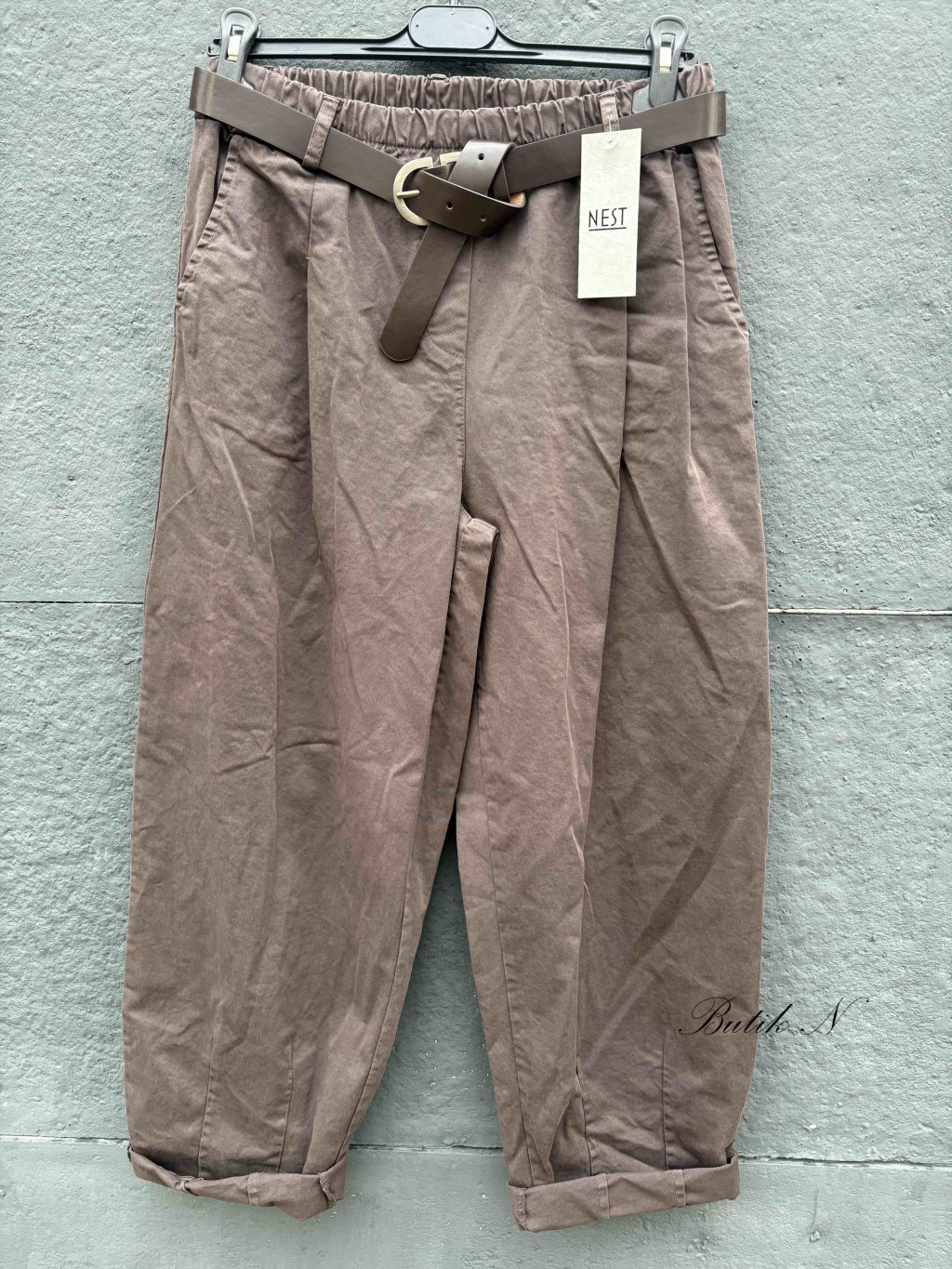 Bavlněné kalhoty balónového střihu s gumou v pase, kapsami a páskem.