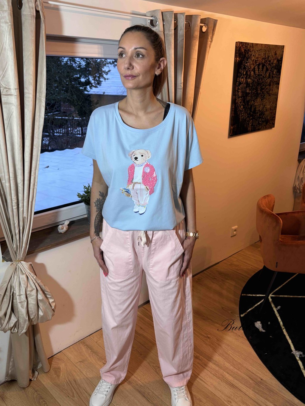 Krásné, bavlněné kalhoty z kvalitního materiálu (teplákovina). V pase mají gumu a dvě velké přední kapsy.