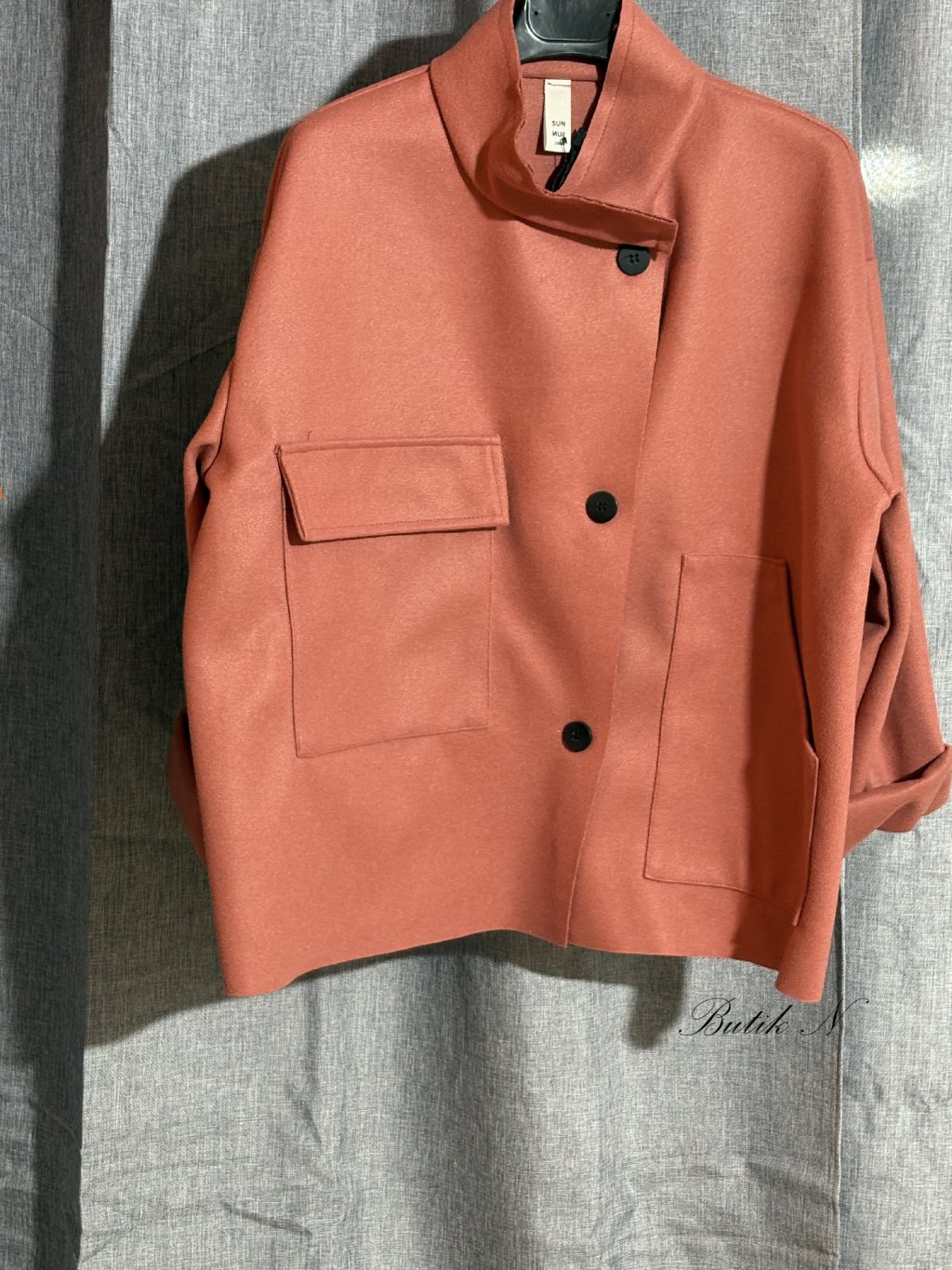 Tento kábátek, úžasného střihu je parádním kousek na jaro. Má jednu boční kapsu, jednu přední kapsu a zapínání na knoflíky.