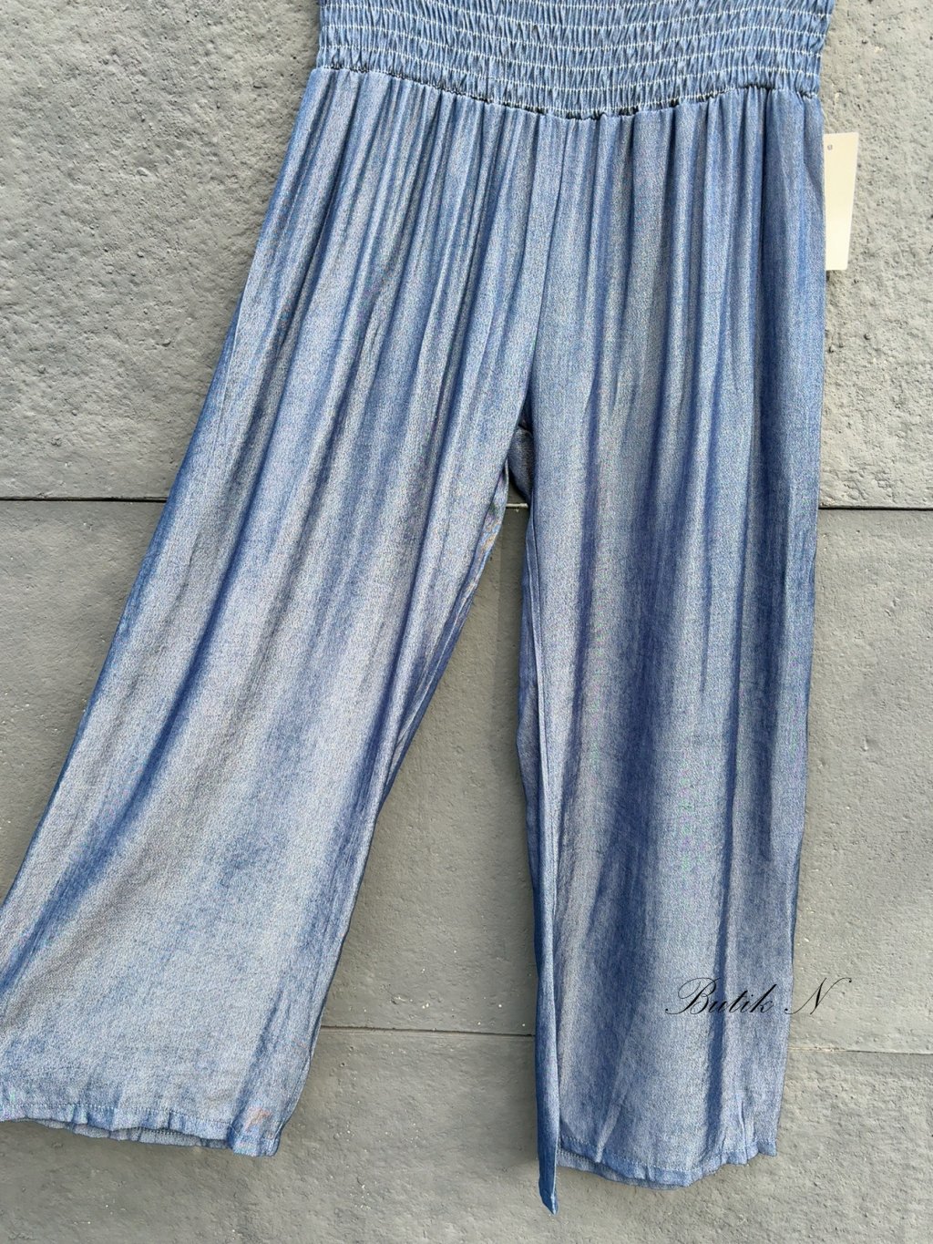 Lehké kalhoty s širokou gumou v pase (žabičkování), které jsou parádním kouskem na léto.