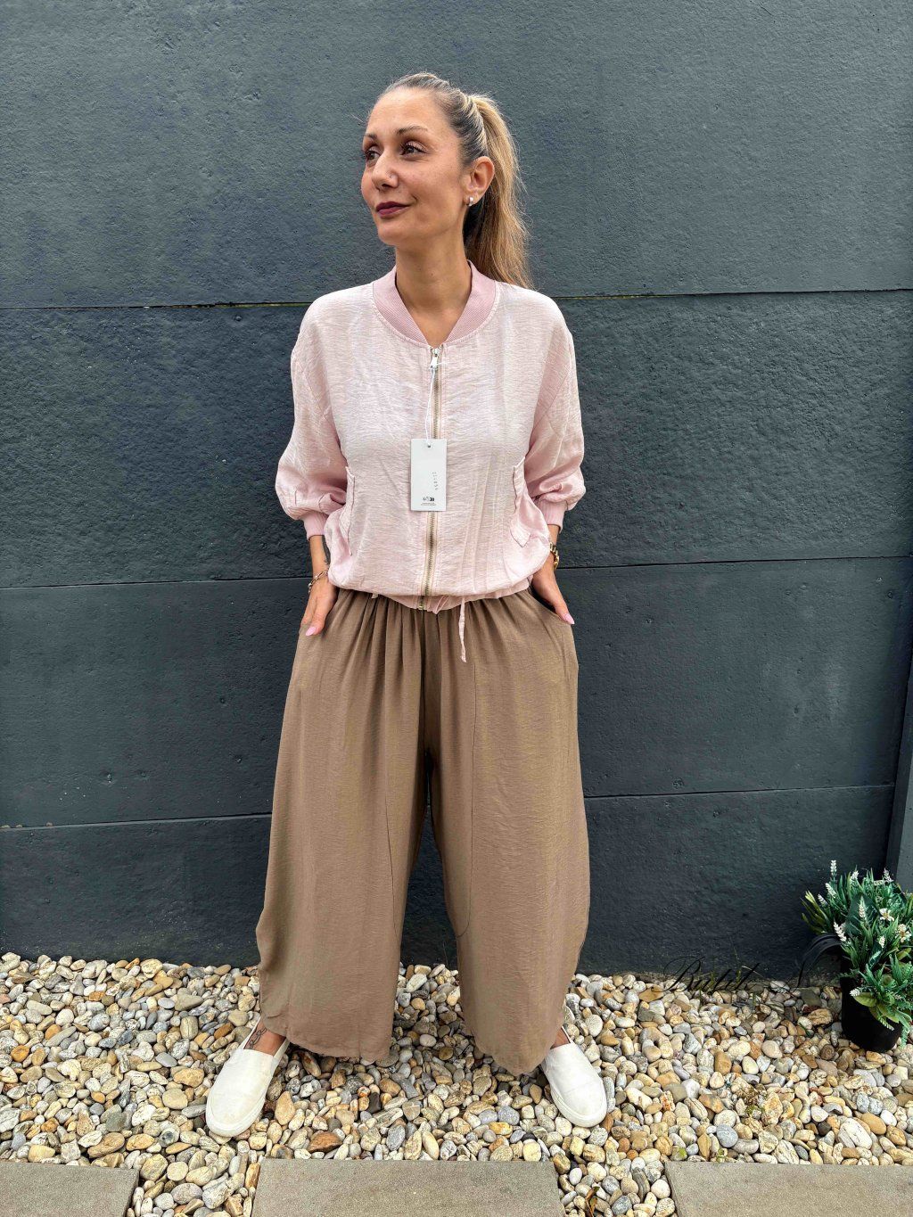 Lehké kalhoty s kapsami a gumou v pase.