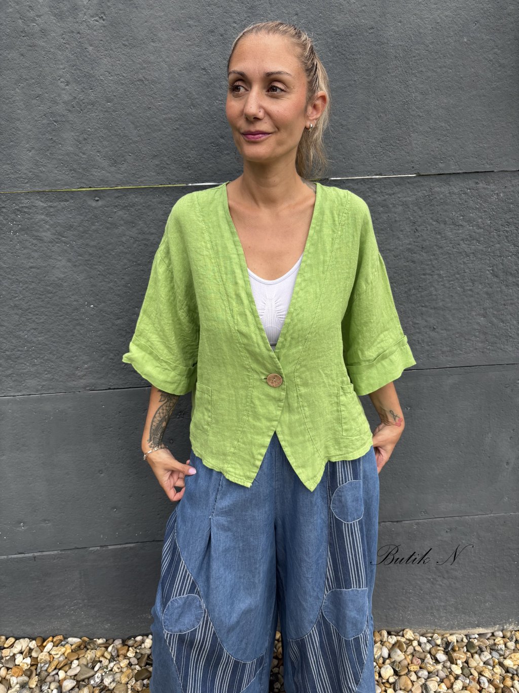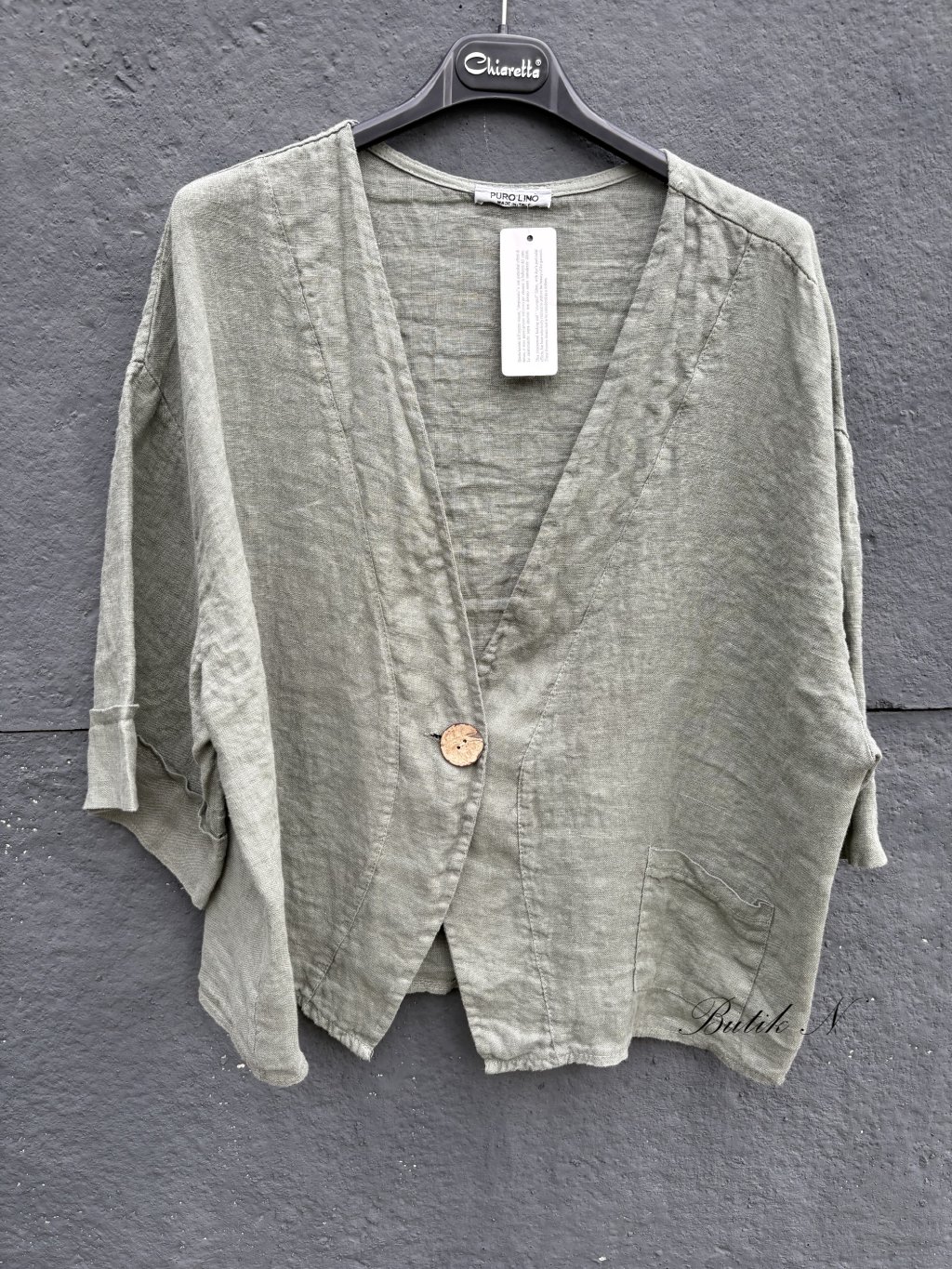 Krásná kvalitní lněná halenka, kterou lze nosit i jako kabátek.