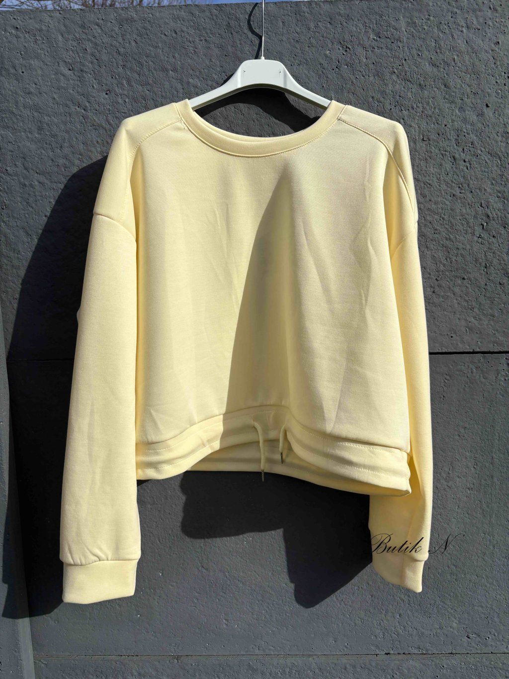 Pohodlná mikina z máslového materiálu, s dlouhý rukávem a šňůrkou ke stažení ve spodním lemu.