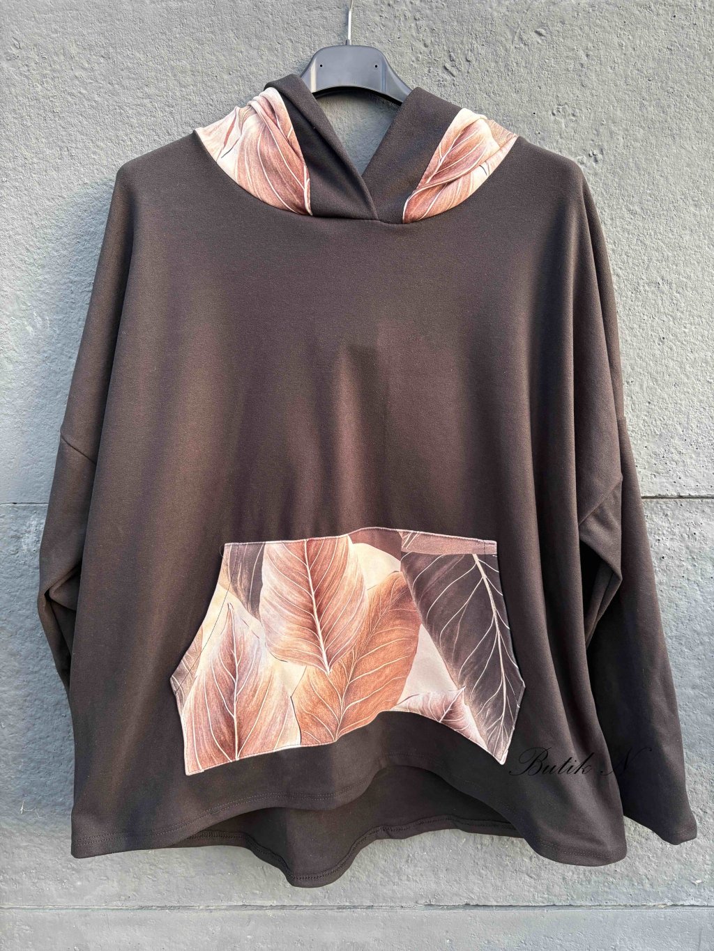 Mikina z luxusního materiálu se šňůrkou ve spodním lemu, ke stažení. Přední strana je vysázená kamínky.