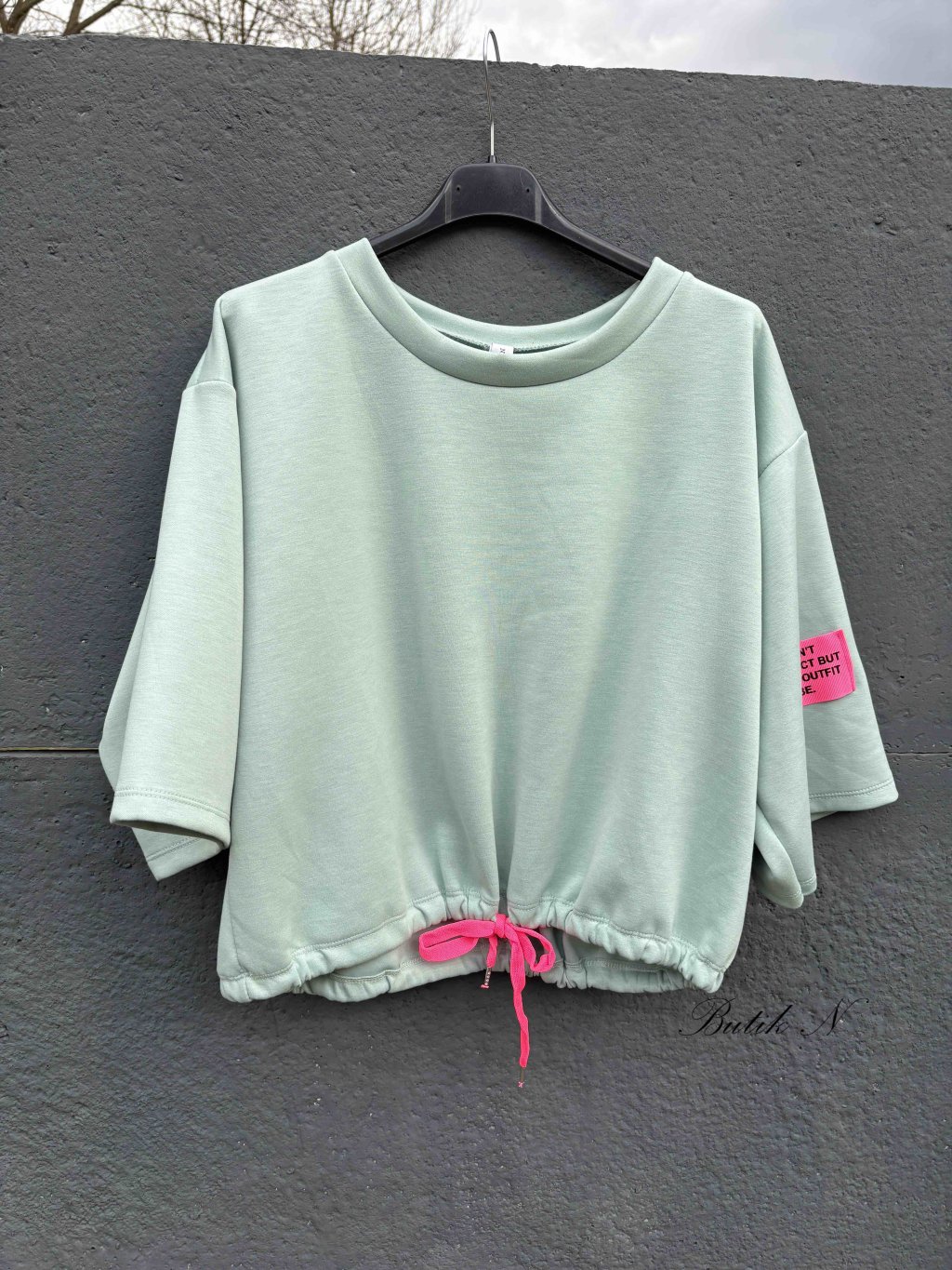 Příjemná mikina z máslového materiálu s 3/4 rukávem a dekorativní všitou cedulkou. Sytost barvy produktu se může lehce lišit s ohledem na světlo v ateliéru nebo...