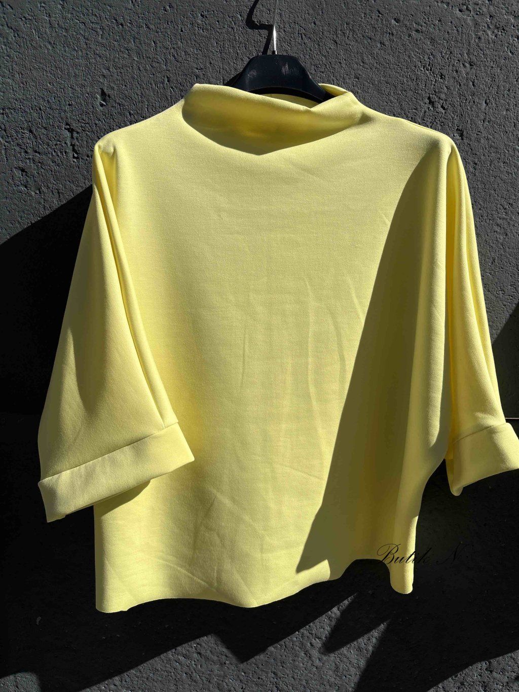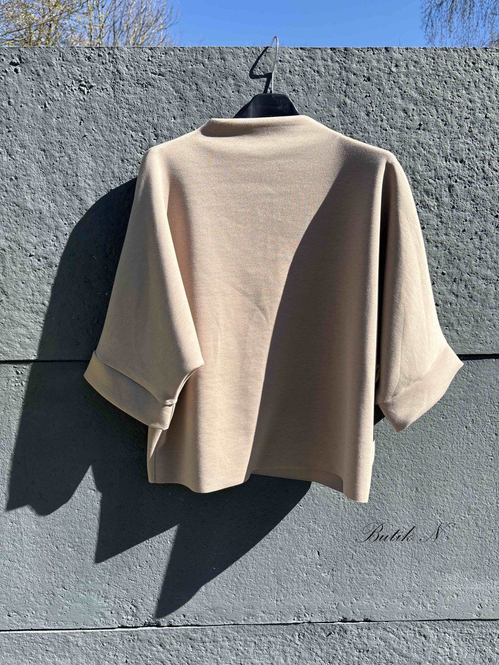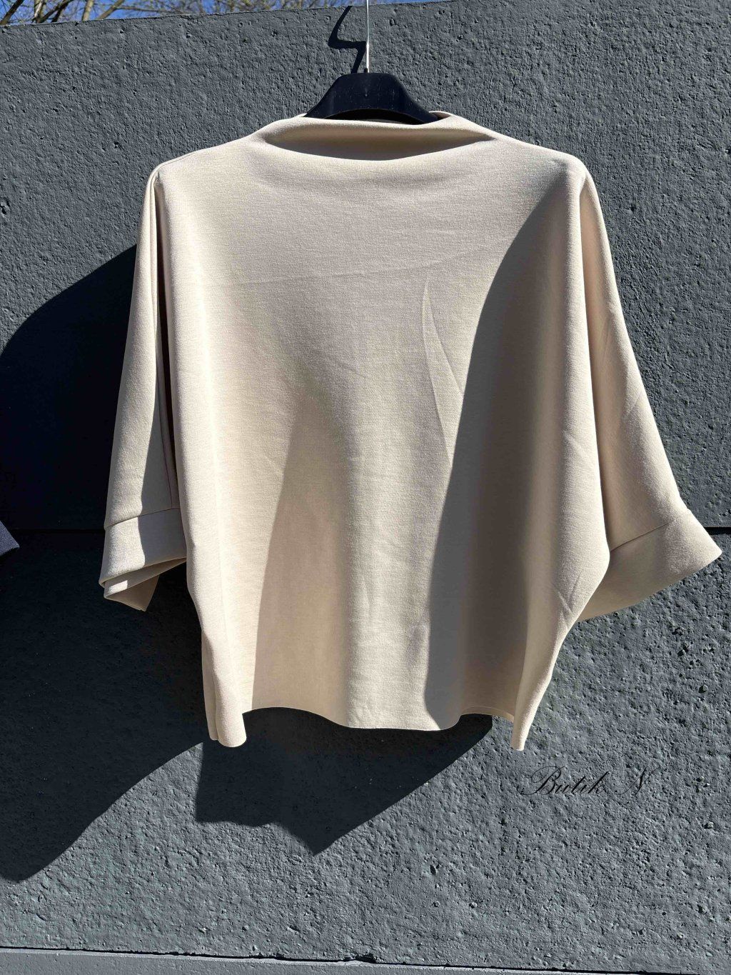 Příjemná mikina z máslového materiálu se stojáčkem a 3/4 rukávem.
