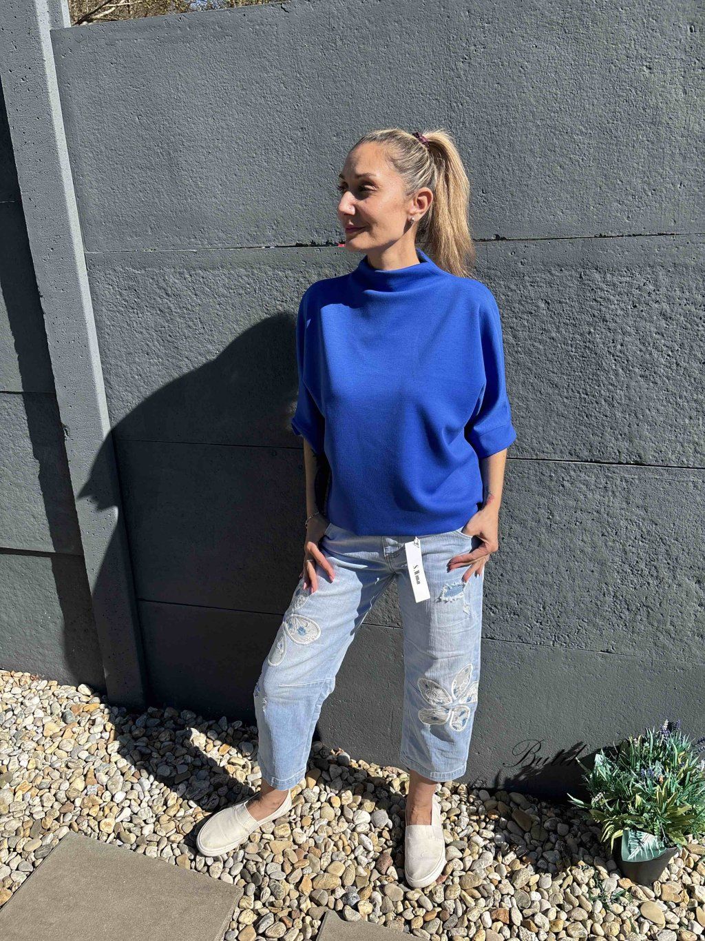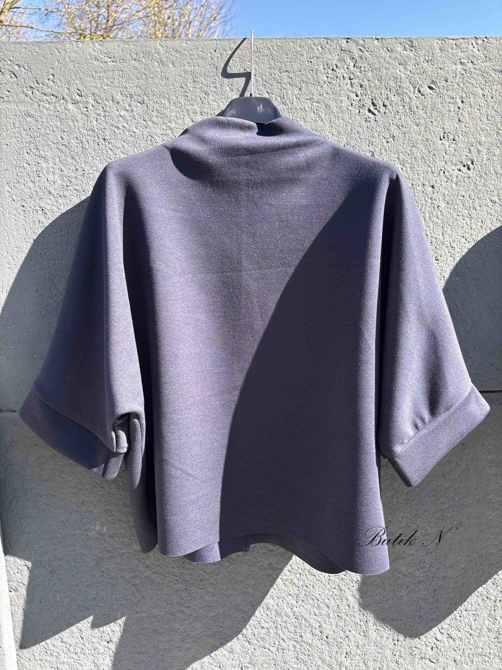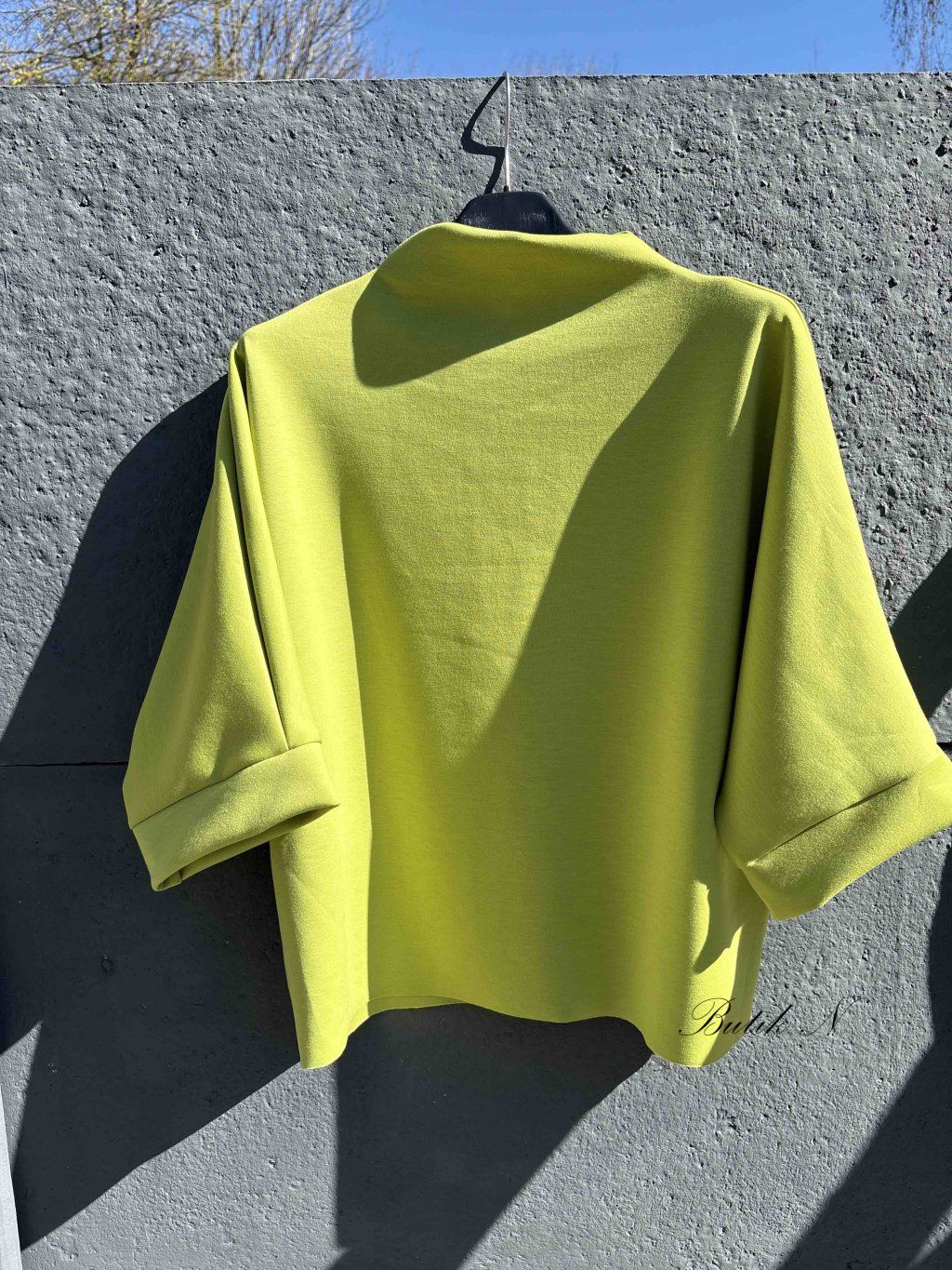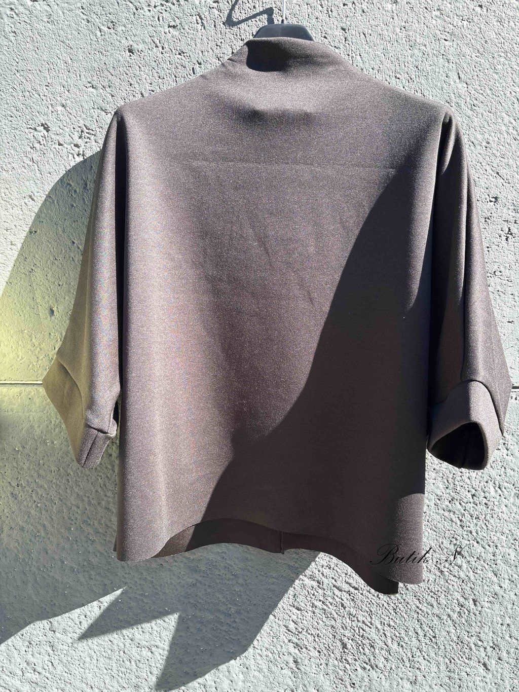 Příjemná mikina z máslového materiálu se stojáčkem a 3/4 rukávem.