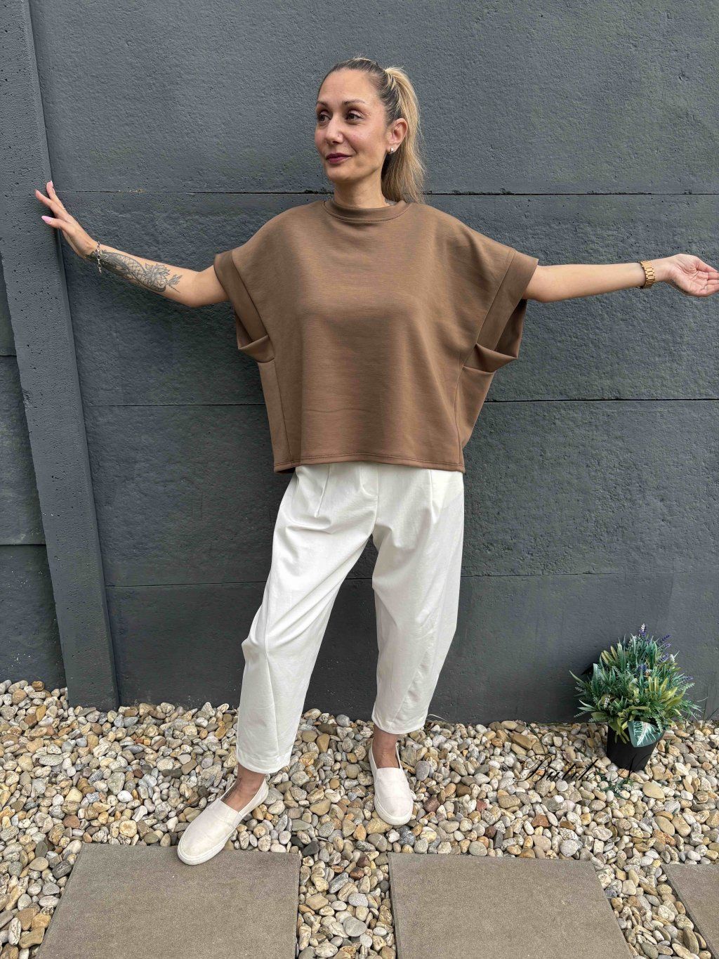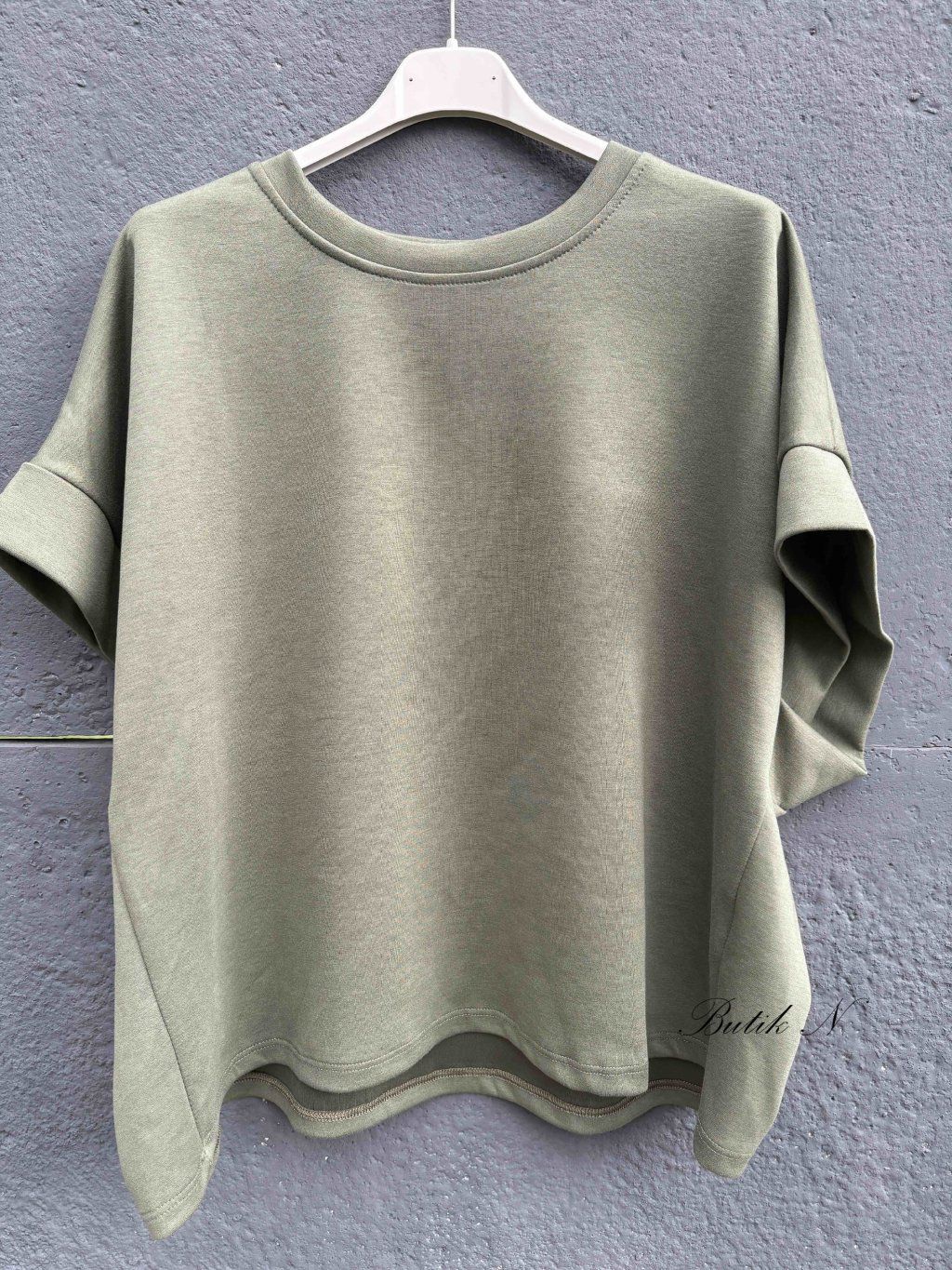 Příjemná mikina s 3/4 rukávem z máslového materiálu. Sytost barvy produktu se může lehce lišit s ohledem na světlo v ateliéru nebo rozlišení Vašeho zařízení.
