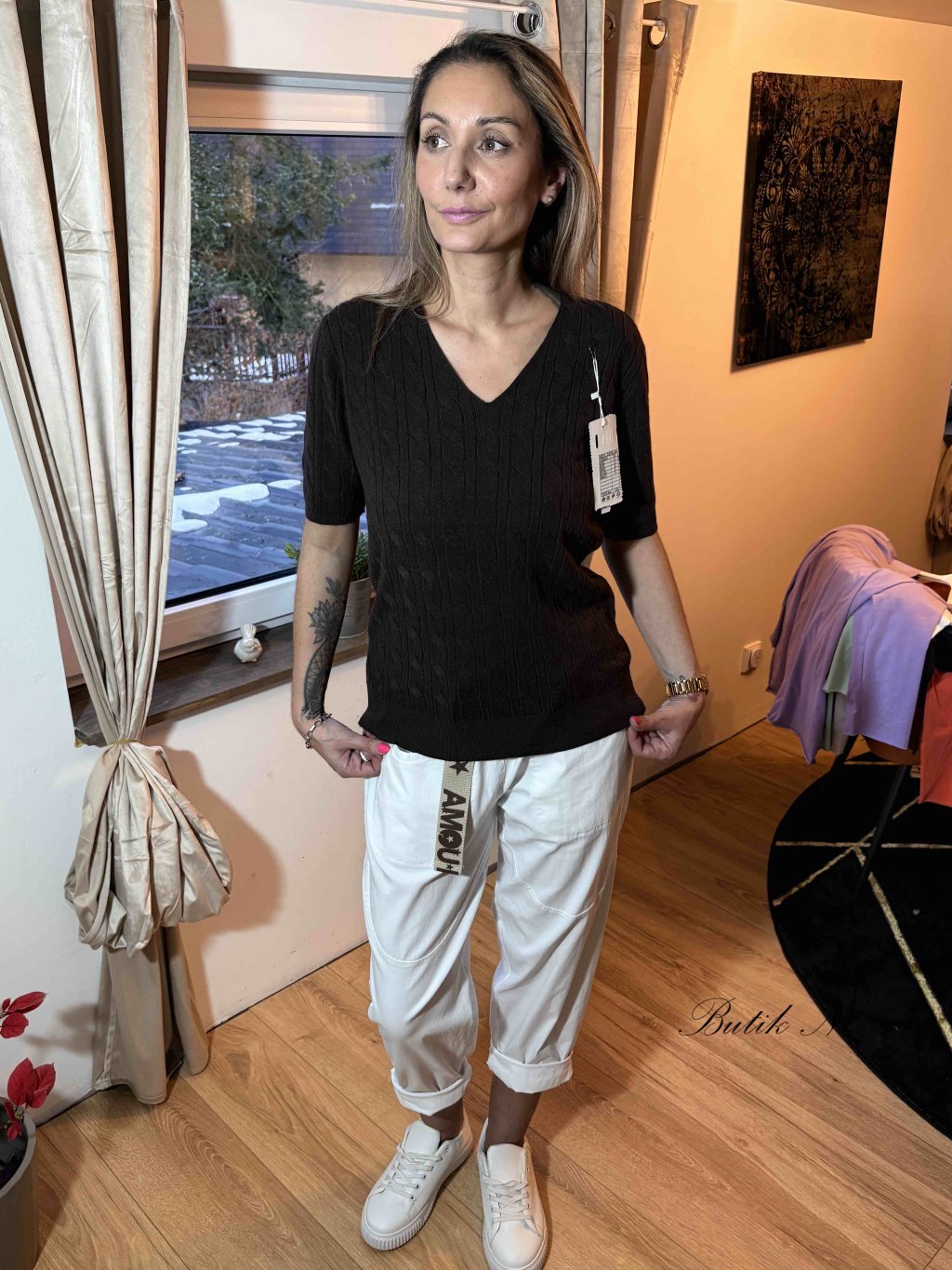 Svetřík z příjemného materiálu s krátkým rukávem.