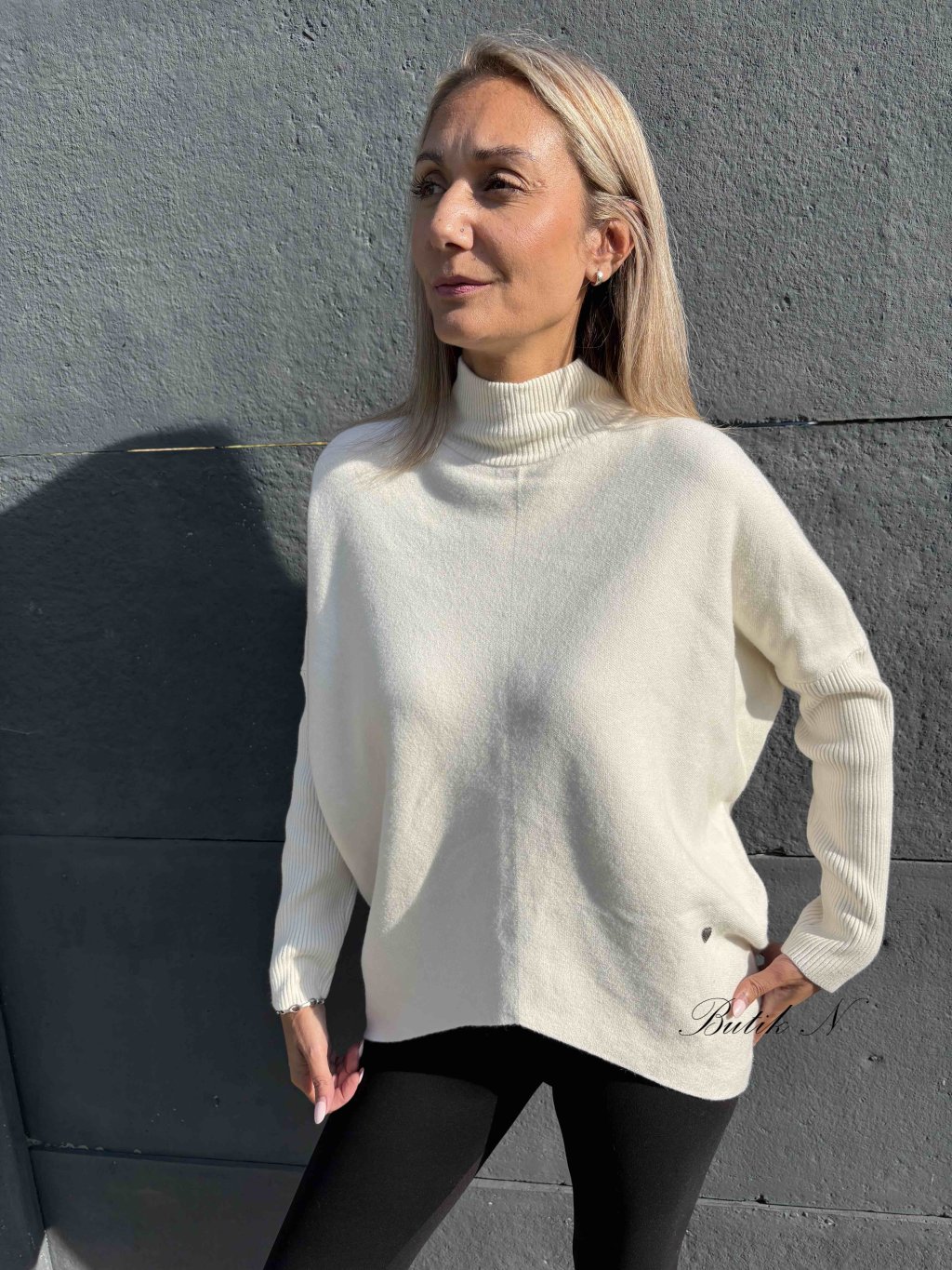Úžasný svetřík, netopýřího střihu, z luxusního materiálu.