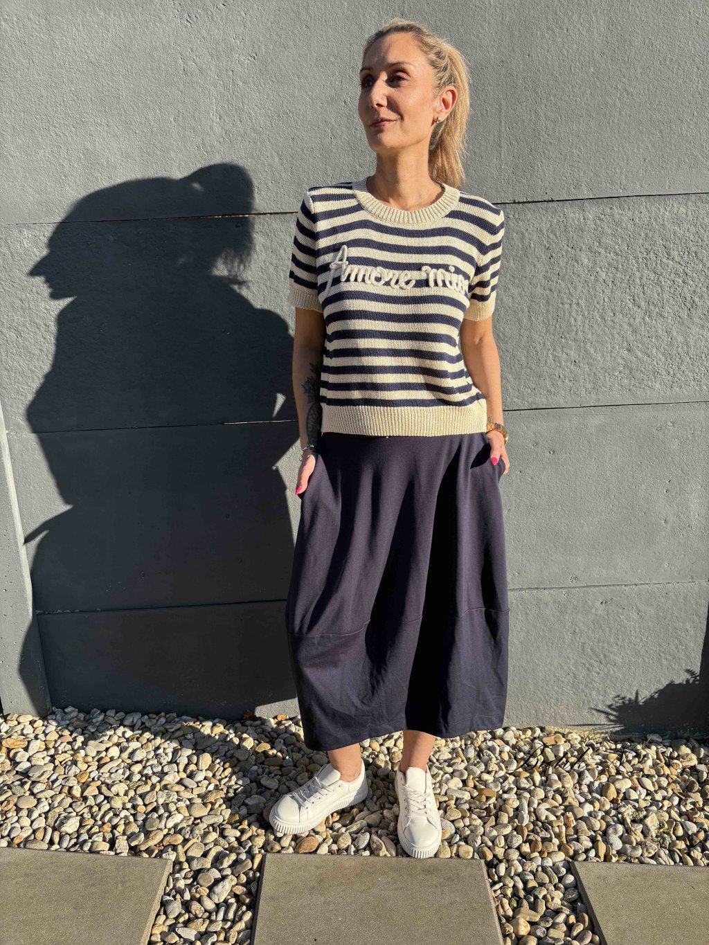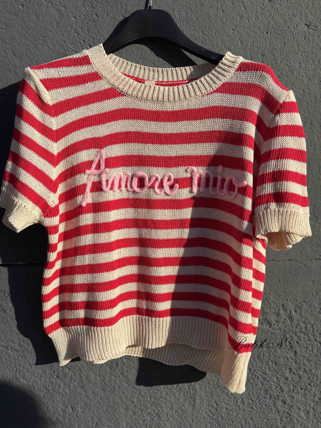 Svetřík z příjemného materiálu s krátkým rukávem a 3D nápisem Amore mio.