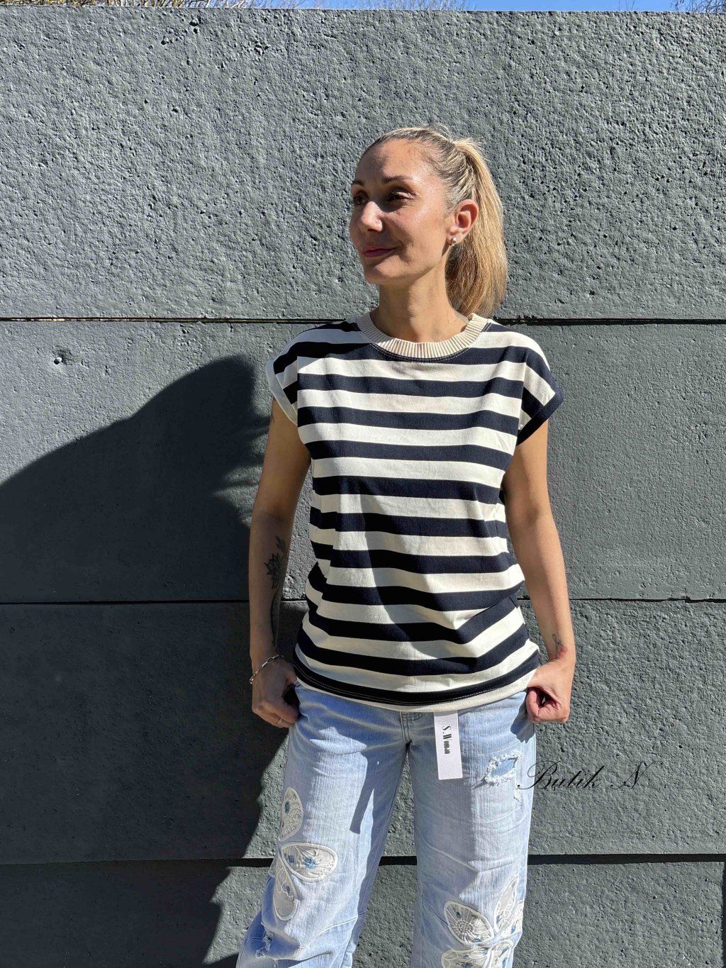 Kvalitní triko z úpletu s vyšitým srdíčkem a stříbrnou nitkou v proužku.Sytost barvy produktu se může lehce lišit s ohledem na světlo v ateliéru nebo rozlišení Vašeho zařízení.